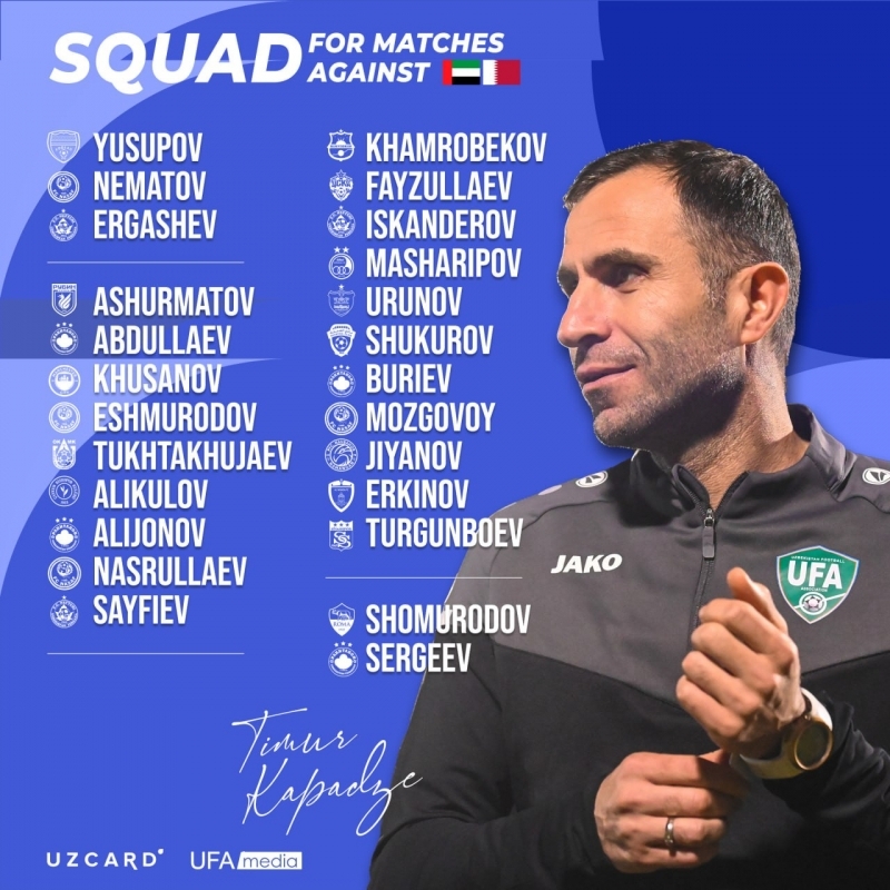 The full squad called up by head coach Timur Kapadze for this training camp has been made public.