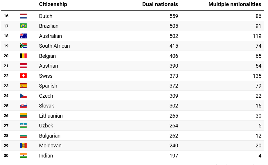 Маълумотларга кўра, ўзбекистонликлар сон жиҳатдан 126 давлат орасида 27-ўринда қайд этилган. Мазкур шахслар Исроил фуқаролигига ҳам эга бўлиб, улар орасида кўп фуқароликка эга бўлган фуқаролар ҳам бор.