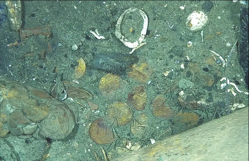 Янги тадқиқотда чўккан кеманинг хазинасини чуқур таҳлил қилиш учун илғор сувости технологияларидан фойдаланилган. Масофадан бошқариладиган сувости қурилмаси ёрдамида олимлар кеманинг орқа қисмида сочилиб ётган тангаларнинг юқори аниқликдаги суратларини олган.
