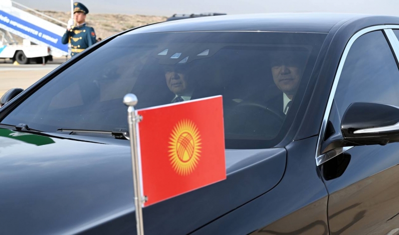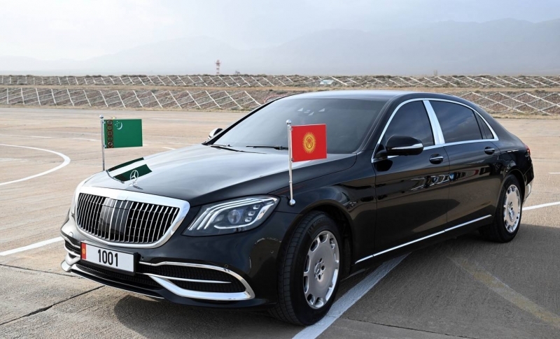 Қирғизистон Президентининг матбуот хизмати томонидан эълон қилинган кадрлардан шуни кўриш мумкинки, етакчилар икки давлат байроқлари ўрнатилган Mercedes-Benz русумли машинага ўтирган. Садир Жапаровнинг ўзи автомобилни бошқариб кетган.