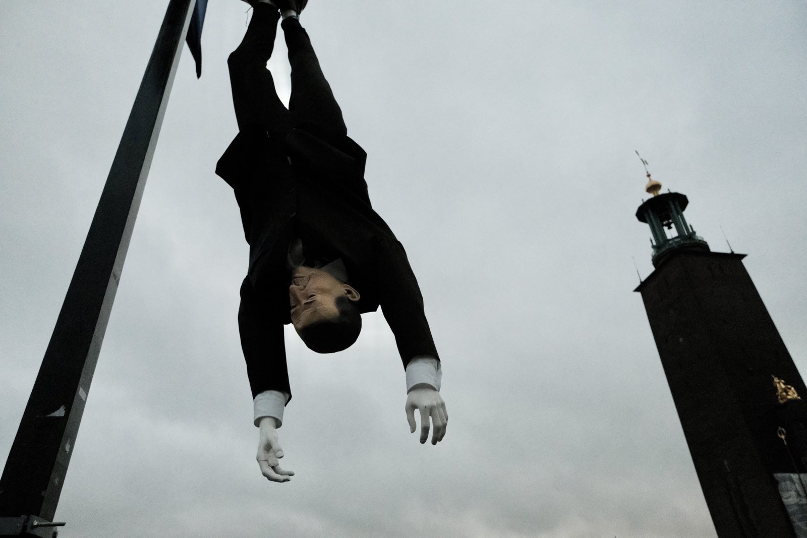 Эслатиб ўтамиз, 12 январь куни Туркияда фаолияти тақиқланган ва террорчи деб топилган Курдистон ишчилар партияси (КИП) тарафдорлари томонидан Стокгольмда ўтказилган митингда Эрдўғанга нисбатан ҳақоратли сўзлар айтилди. Бундан ташқари, маҳаллий ҳокимият биноси олдидаги устунга Эрдўғанга ўхшатиб ясалган қўғирчоқ оёғи осмондан ҳолатда осиб кетилди. Афтидан, буни ўзини “бутун Курдистон бўйлаб инқилобий ҳаракат билан бирдамлик ва алмашиш тармоғи” деб атайдиган швед ташкилоти фаоллари амалга оширган. Улар Эрдўғанни Италиянинг фашист диктатори Бенито Муссолини билан тенглаштирмоқчи бўлган, унинг жасади 1945 йилда Миланда тескари осилган эди.