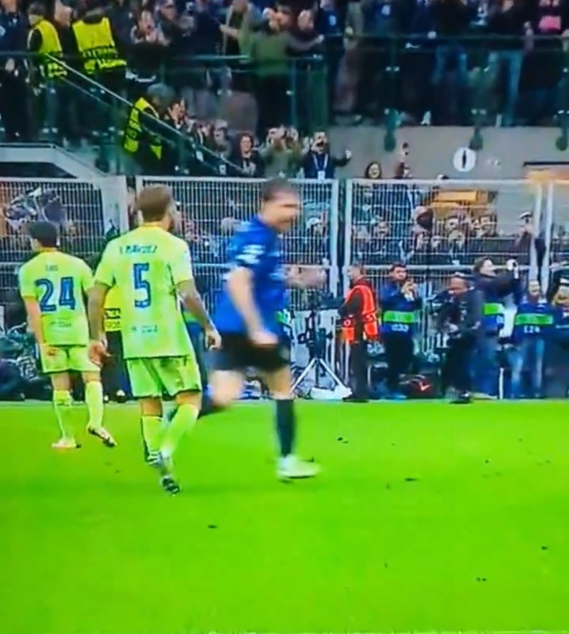 Birinchi bo‘limda tomoshabinlar va bosh hakam Shimon Marsinyak “Barselona” darvozasiga belgilangan penaltiga oid videotakrorni ko‘rayotgan vaziyatda, “Barsa” himoyachisi Inigo Martines “neradzurrilar” himoyachisi Franchesko Acherbi tomon tupurdi.