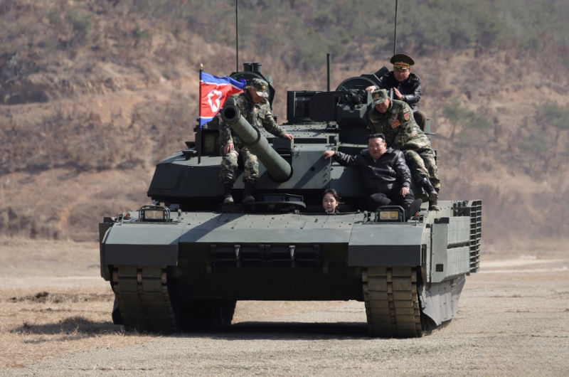 КХДР етакчиси Ким Чен Ин қизи Ким Жу Э ҳамроҳлигида ҳарбий машғулотлар вақтида танкда сайр қилди. Бу ҳақда Корея марказий телеграф агентлиги хабар берди.