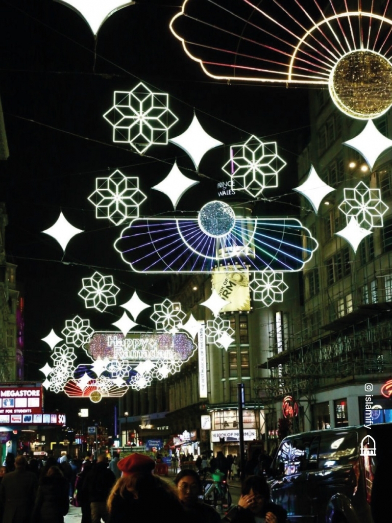 Лондон марказидаги Пикадилли циркидан Лестер майдонигача чўзилган Ковентри кўчаси яна бир бор Рамазон байрами муносабати билан ёритилган. Лойиҳа “Азиз” жамғармаси томонидан Лондон муниципалитети билан ҳамкорликда амалга оширилган. Бу йил кўча геометрик ёруғлик нақшлари билан безатилган, пиёдалар боши узра эса “Happy Ramadan!” (“Рамазон муборак!”) ёзуви туширилган инсталляция порлаб турибди.