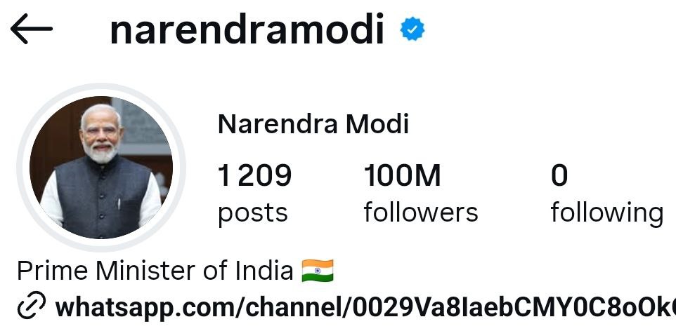 Ҳиндистон Бош вазири Нарендра Моди Instagram ижтимоий тармоғида 100 миллиондан ортиқ обуначига эга бўлган биринчи дунё етакчисига айланди. Бу ҳақда “Times of India” нашри хабар берди.