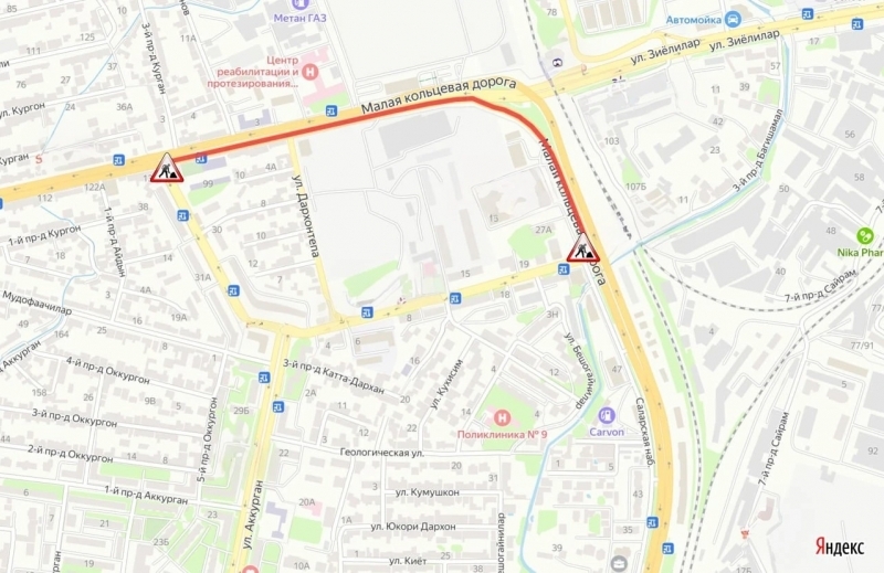 Qayd etilishicha, Mirzo Ulug‘bek tumanidagi qurilish-ta’mirlash ishlari sababli Kichik halqa avtomobil yo‘lining Oqqo‘rg‘on ko‘chasi kesishmasidan Katta Darxon ko‘chasi kesishmasigacha bo‘lgan bir tomonlama yo‘nalish qismi bugun, 22 may soat 15:00 dan 24 may soat 06:00 gacha barcha transport vositalari uchun yopildi.