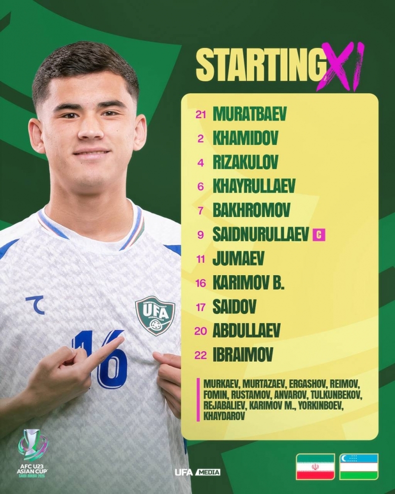 Бугун, 10 январь куни Ўзбекистон олимпия терма жамоаси Осиё кубогидаги 2-тур доирасида Эронга қарши майдонга тушади. Равшан Ҳайдаров бошчилигидаги терма жамоанинг ушбу учрашув учун асосий таркиби эълон қилинди.