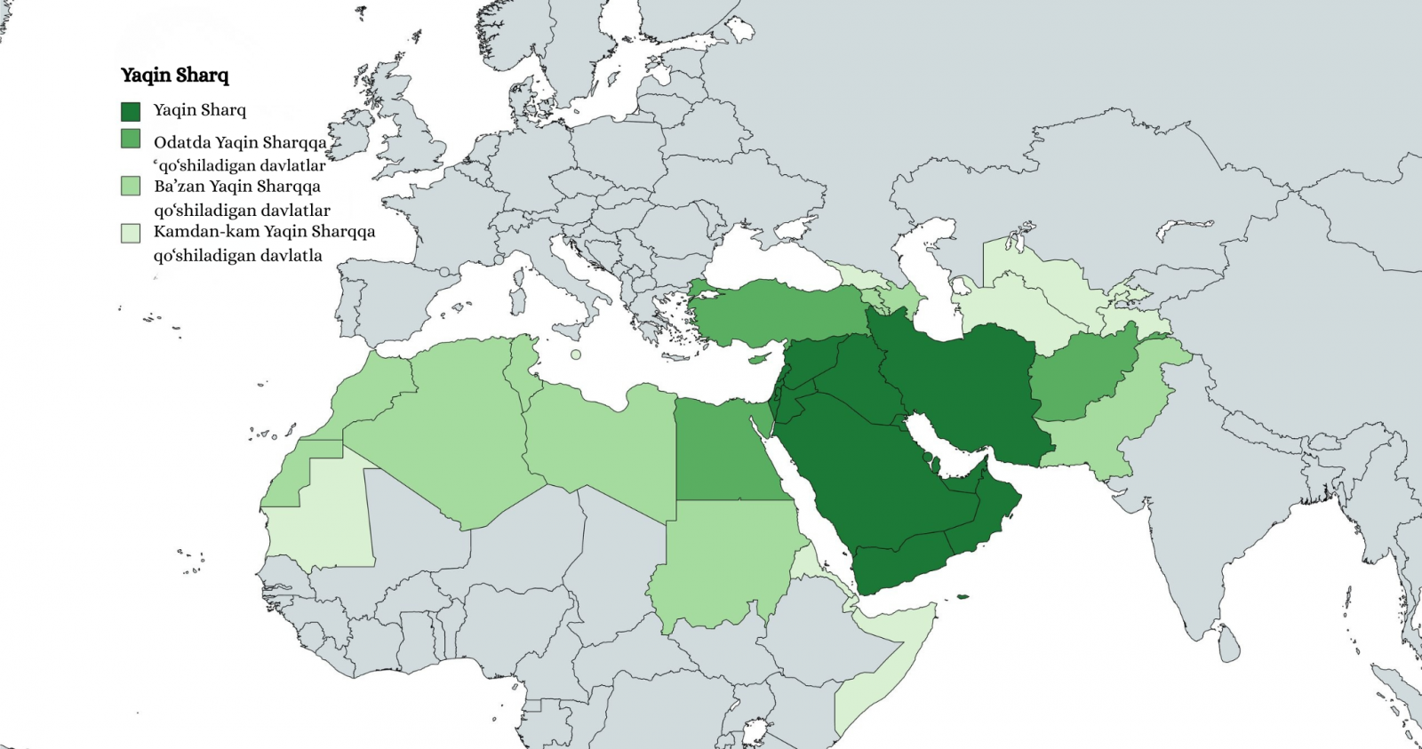 Яқин Шарқ — бу атама қаърида аниқ жуғрофий мазмундан кўра кўпроқ катта давлатларнинг манфаатлари, дин ва маданиятлар тўқнашуви, ресурслар учун кураш ҳамда стратегик беллашув ётади. Бу ҳудуд чегаралари географлар эмас, сиёсатчилар томонидан белгиланади, хариталари картографлар эмас, амалдорлар қўли билан чизилади. Ғарб манбаларида Арабистон яримороли, Миср, Эрон, Ироқ, Левант ва Туркияни қамраб олувчи ушбу минтақа рус манбаларида Эрон ва Афғонистон, баъзи ҳолларда Покистонни ўз ичига олиб келади. “International Maritime Organization” манбаларида, бу тушунча Баҳрайн, Эрон, Ироқ, Қувайт, Уммон Султонлиги, Қатар, Саудия Арабистони Подшоҳлиги ва Бирлашган Араб Амирликларини ифодаловчи термин сифатида келади. Бир сўз билан айтганда, бу ҳудуд аниқ географик чегараларга эга эмас, балки тарихий, сиёсий ва маданий омиллар асосида шаклланган геосиёсий макон ҳисобланади. Кундалик ҳаётда Яқин Шарқ атамасини кўп ва хўп қўллаймиз, аммо унинг ортида ётган геосиёсий ўйинларга эътибор қиляпмизми?