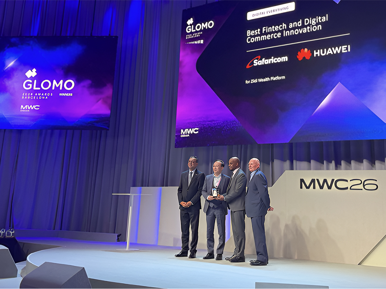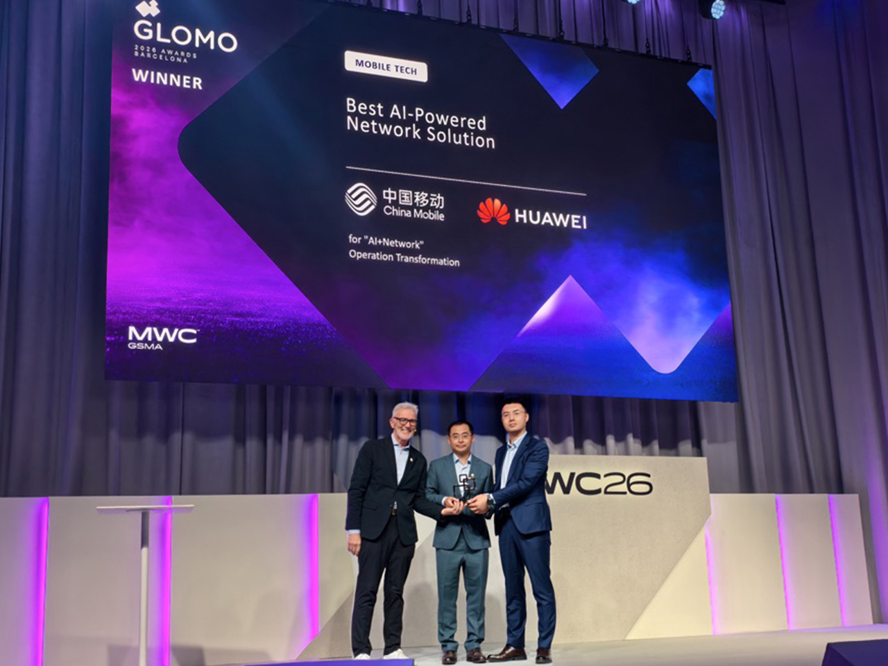 Huawei Jahon mobil kongressi MWC Barcelona 2026 da sakkizta nufuzli Global Mobile (GLOMO) mukofotini qo‘lga kiritdi. Ushbu mukofotlar qatoriga Eng yaxshi mobil tarmoq infratuzilmasi, SI asosidagi eng yaxshi tarmoq yechimi, Eng yaxshi yerusti bo‘lmagan tarmoq yechimi, Ulangan iste’molchilar uchun eng yaxshi mobil operator xizmati, Ulangan sog‘liq va farovonlik uchun eng yaxshi mobil innovatsiya, Eng yaxshi FinTech va raqamli savdo innovatsiyasi, Mobil texnologiyalardan foydalanish orqali qulaylik va inklyuziyani ta’minlash bo‘yicha eng yaxshi yechim hamda Bolalar va yoshlar hayotini yaxshilash uchun eng yaxshi mobil innovatsiya kiradi.