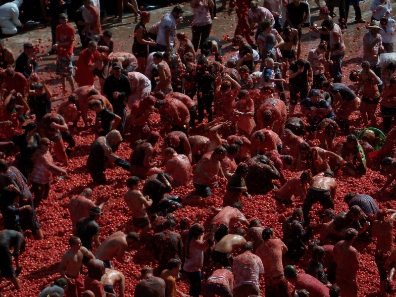 Joriy yilda festivalga minglab odamlar yig‘ilib, bir-birlarini 120 tonna pomidor bilan “siyladi”.