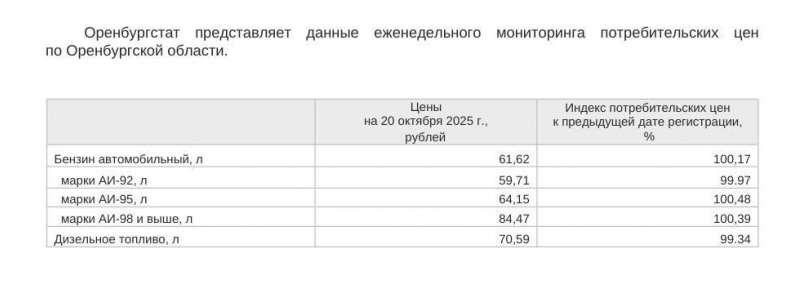 - Agar 13 oktyabrda AI-92 benzinining bir litri o‘rtacha 59,73 rublni tashkil etgan bo‘lsa, 20 oktyabrda 59,71 (-3 kopeyka);