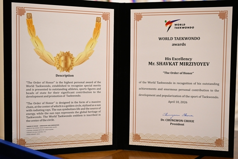 Cho Chung Von, o‘z navbatida, Prezident Shavkat Mirziyoyevga sportni rivojlantirishga qo‘shgan ulkan hissasi uchun Butunjahon taekvondo federatsiyasi tomonidan ta’sis etilgan oliy shaxsiy mukofot – Shon-sharaf ordenini topshirdi.