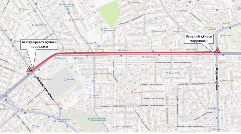 Ma’lum qilinishicha, tumandagi Kichik halqa avtomobil yo‘lining Beshqayrag‘och ko‘chasi kesishmasidan Beruniy ko‘chasi kesishmasigacha bo‘lgan bir tomonlama yo‘nalish qismi bugun, 18 iyul 15:00 dan 21 iyul 06:00 gacha barcha transport vositalari harakati uchun yopiladi.