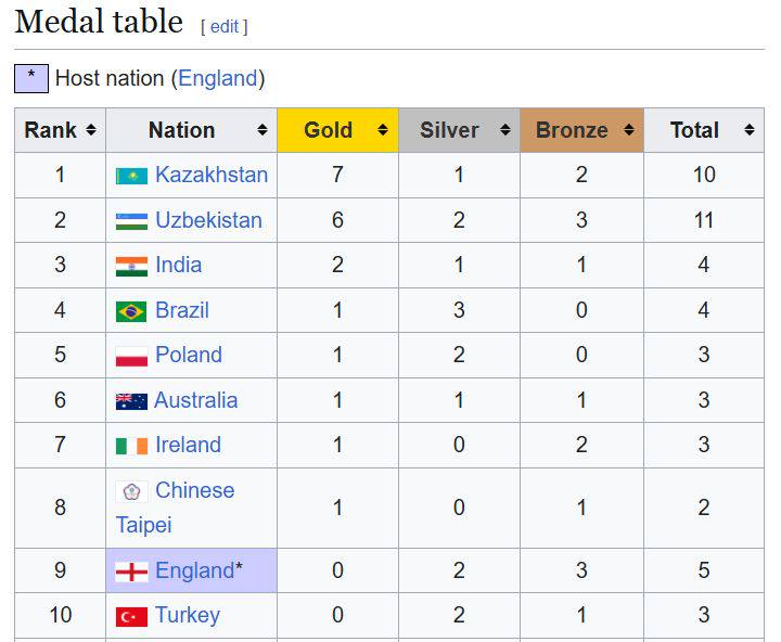 Qayd etish joiz, musobaqalarda birinchi o‘rinni Qozog‘iston bokschilari egaladi. Ular umumiy hisobda 10 ta medal: 7 ta oltin, 1 ta kumush, 2 ta bronzani qo‘lga kiritishdi.