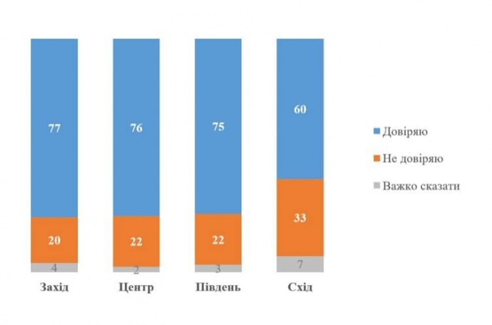 Sotsiologlarning qayd etishicha, Ukrainaning barcha hududlarida aholining aksariyati Prezidentga ishonch bildiradi va so‘rov natijalariga ko‘ra, ko‘rsatkichlardagi farq unchalik katta emas.