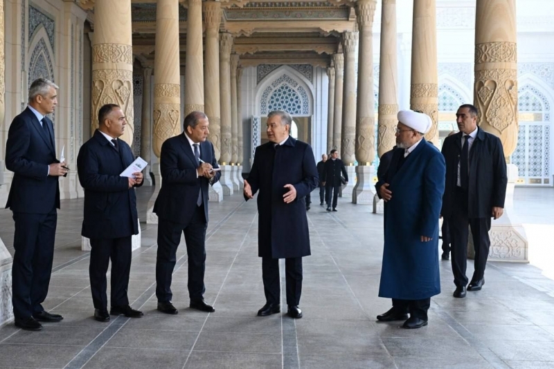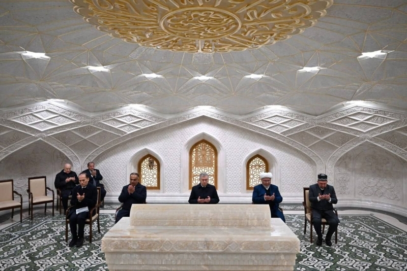 As is customary, the head of state began his visit to Samarkand by visiting the Imam Bukhari Mausoleum. Verses from the Quran were recited and prayers were offered.