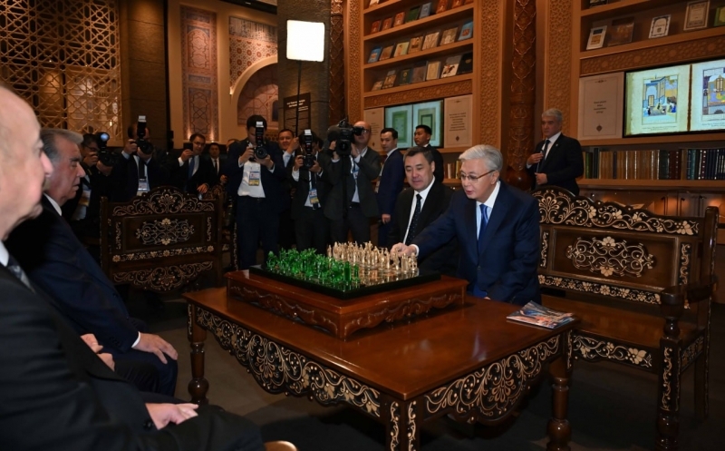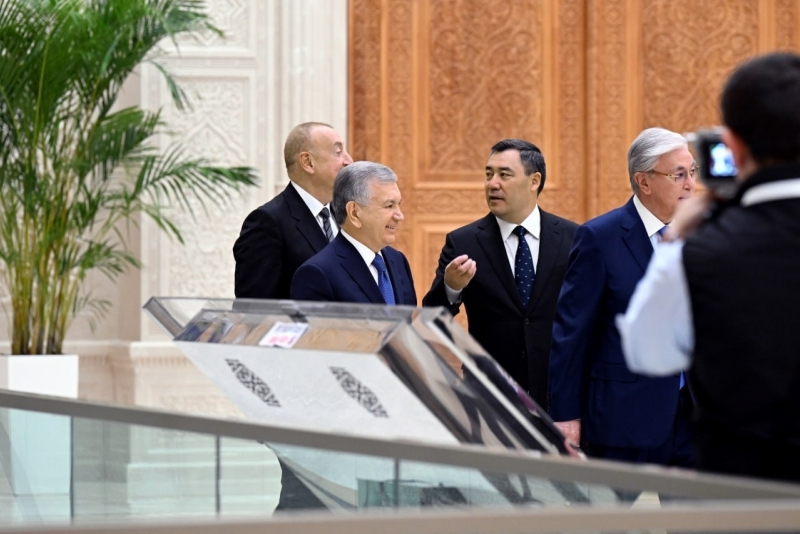 Azerbaijani President Ilham Aliyev, Tajik President Emomali Rahmon, Kyrgyz President Sadyr Japarov, and Kazakh President Kassym-Jomart Tokayev visited the hall preserving the Uthman Mushaf of the Quran alongside President Mirziyoyev. This rare manuscript, one of the oldest copies of the Quran, holds immense historical and cultural significance, reflecting the deep spiritual threads that have shaped the region’s civilization.