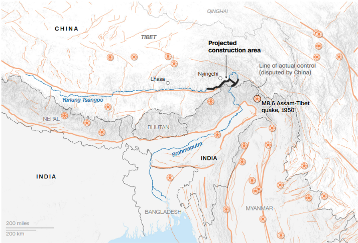 Табиат давлатлар чегараларидан олдин яралган. Хитойнинг энергетика тизими учун муҳим бўлган дарё фақатгина Хитойнинг мулки эмас. Ҳиндистон ва Бангладеш ҳам ушбу дарёга бирдек ҳақлидир. Трансчегаравий сув йўллари доимо баҳсли ва мураккаб мавзу бўлиб келган. Хитойнинг янги лойиҳаси ҳам айнан шундай муаммога дуч келмоқда.
