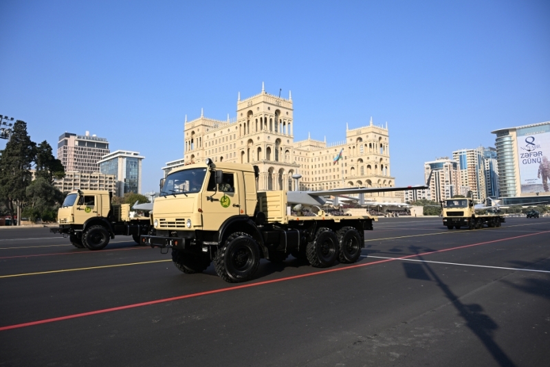 Майдон бўйлаб Озарбайжон армиясининг барча бўлинмаларидан колонналар ўтди, замонавий танклар, зирҳли техникалар, узоқ масофага учувчи ракета тизимлари, артиллерия қуроллари ҳам намойиш этилди. Парадда Покистон Қуролли кучлари бўлинмалари ва Туркия Президенти гвардияси тантанали полки батальони ҳам иштирок этди.