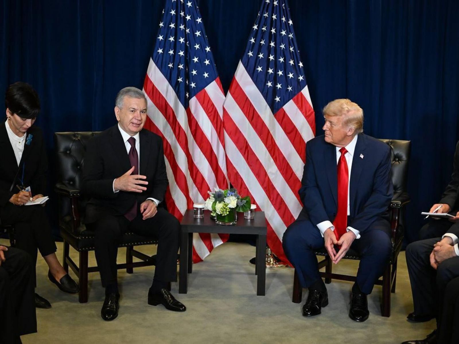 23 sentabrda BMT bosh assambliyasining 80-yubiley sessiyasi doirasida Mirziyoyev va Tramp o‘rtasida bo‘lib o‘tgan uchrashuv ikki davlat munosabatlarida “tarixiy burilish” sifatida baholandi. Ikki davlat rahbari o‘rtasida ko‘plab mavzular muhokama qilindi va O‘zbekiston Prezidenti Shavkat Mirziyoyev Tramp tomonidan yuksak e’tirof etildi. AQSH korxonalaridan qilingan xaridlar va shartnomalar Oq uy rabariga xush yoqib, O‘zbekiston va Prezident Mirziyoyev haqida qator iliq fikrlarni bildirib o‘tgandi.