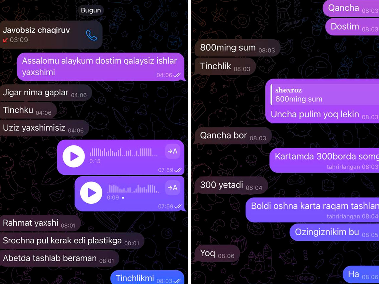 “Qarz berib tur”. Telegram’da xavfli firibgarlik turi avj oldi